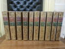 Genève, Jean-Léonard Pellet, 1780. 10 volumes in-8, plein veau époque, dos lisses ornés ornés de fleurons, de filets et de roulettes dorés, titre doré, plats encadrés d'un triple filet doré, coupes filetées, toutes tranches marbrées. XVI, 532 pp; faux-titre, titre, VIII, 582 pp; faux-titre, titre, VII, 580 pp; faux-titre, titre, VIII, 472 pp; faux-titre, titre, VII, 405 pp; faux-titre, titre, VII, 484 pp; XVI, 558 pp; faux-titre, titre, VIII, 548 pp; VIII, 412 pp, VI, 538 pp. Ouvrage illustré d'un portrait de l'auteur en frontispice d'après Cochin, gravé par De Launay et d'une figure en frontispice des neuf autres volumes d'après Moreau le jeune. Contient 22 tableau dépliants. Epidermures sur les plats des tome I, VII, VIII, IX et X, quelques coins abîmés, quelques rousseurs, mouillure forte au début et dans la marge supérieure du tome II, sur l'ensemble du tome III et du tome IV, dans la marge inférieure du tome V sur l'ensemble du volume et dans la marge supérieur en fin du même.