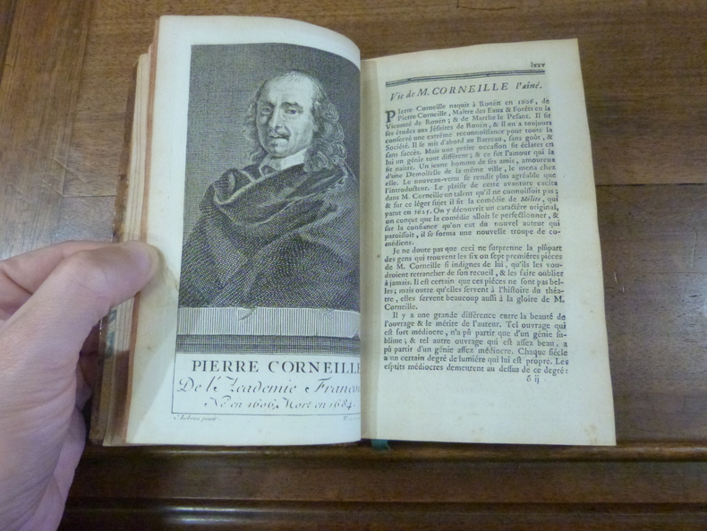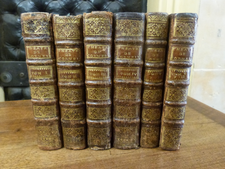 "Belle réunion complète du théâtre des frères Corneille. Cette édition du Théâtre de Pierre Corneille, fut publiée par les soins du censeur royal François-Antoine Jolly, pour la première fois en 1738. ""Un Avertissement, placé en tête du premier volume donne des renseignements sur l'époque de la représentation et de l'impression de chaque pièce. Jolly a pu recueillir, à ce sujet, un certain nombre de faits curieux, qui s'étaient conservés jusqu'à lui par tradition"" (Picot, 634). Cette nouvelle édition est complétée d'un volume consacré aux Œuvres diverses de Pierre Corneille. Cet ouvrage avait été édité originellement de façon autonome par l'abbé François Granet, en 1738 (Picot, 174). Il réunit des traductions, des poèmes - dont plusieurs célébrant les victoires du roi -, des madrigaux, des sonnets, et divers écrits. Au Théâtre du grand Corneille, sont jointes les œuvres dramatiques de son frère cadet Thomas (1625-1709). On y retrouve notamment sa tragédie Timocrate, le plus grand triomphe de tout le XVIIe siècle : interprétée pendant près de six mois devant une salle comble, elle connut quatre-vingts représentations consécutives, c’est-à-dire mieux que son frère, Racine ou Molière ! ""Tragédies romanesques, tragédies cornéliennes, tragédies sentimentales à la Quinault, ou même à la Racine ; comédies espagnoles et comédies françaises ; opéras et pièces à machines, Thomas Corneille en fournit tous les genres au théâtre du Marais et au théâtre de l'Hôtel de Bourgogne"" (Dictionnaire des Lettres françaises, XVIIe siècle). A la mort de son frère, en 1684, Thomas Corneille fut élu à l'unanimité à son fauteuil à l'Académie. Il y fut reçu par Racine qui, à cette occasion, prononça le fameux éloge de son illustre rival, présenté ici à la fin du dernier tome. Chacun des deux œuvres complets des frères Corneille s'ouvre sur un portrait gravé en frontispice : Pierre d'après Le Brun et Thomas d'après Jouvenet. Bel exemplaire en reliure de l'époque, aux armes de René-Mans de Froulay, comte de Tessé. (Olivier, Hermal et Roton, Reliures armoriées françaises, 974). De la bibliothèque de Lumigny avec ex-libris. E. Picot, Bibliographie cornélienne, 638."