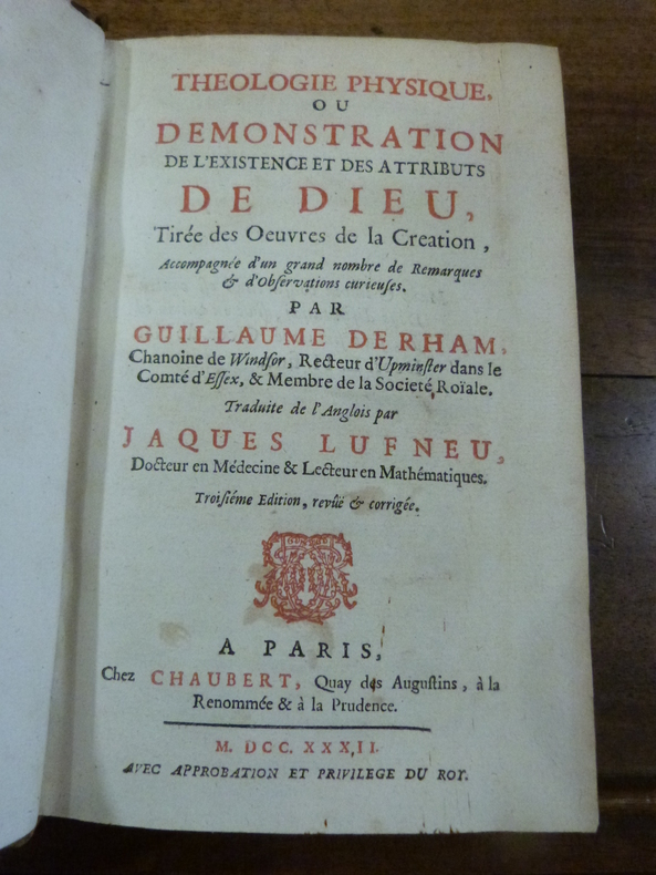 Paris, Chaubert, 1732. 2 tomes en 1 volume in-8, plein veau époque, dos à nerfs richement orné, titre doré, coupes ornées de roulettes dorées, toutes tranches rouges. Titre, 7 ff non chiffrés, 24 pp, 322 pp; titre, 323 à 627 (pagination continue entre les 2 tomes), 16 pp non chiffrées. Troisième édition revue et corrigée, illustrée d'une planche dépliante. Coiffe supérieur un peu abîmée, petit trous de ver au dos en tête (sans gravité), quelques rousseurs, mouillure sur la planche et les 2 derniers feuillets.