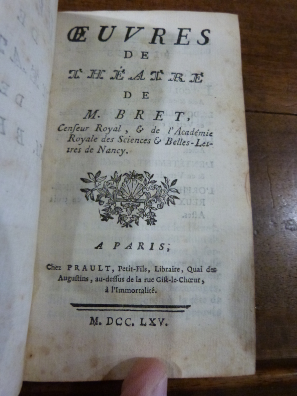 Prault, Paris 1738- Pleine reliure au dos lisse avecfleurons dorés et titres dorés sur étiquettes rouges , tranches rouges , Théatre Italien Tome 4:Les Etrennes, ou la Bagatelle : comédie. De Monsieur de Boissy. Représentée pour la première fois, par les Comédiens italiens, au mois de janvier 1733. Troisième édition, augmentée de prédictions nouvelles dans l'Almanach des théâtres en 1734.A Paris ; chez Pierre Prault. M. DCC. XXXIX, [1739],Privilège du 20 décembre 1737 octroyé à Pierre Prault.Certains ex. ont été diffusés dans un recueil daté de 1738 pour lequel on a imprimé un titre général ("Oeuvres de théâtre de Mr. de Boissy"), une dédicace au comte de Saint-Florentin, une préface et une table.VIII-56 p.suivi de La Surprise de la haine, comédie : De Monsieur de Boissy. Représentée pour la première fois par les Comédiens italiens, le 10 février 1734.,A Paris, chez Prault père. M. DCC. XXXIV, [1734]Privilège du 31 janvier 1733 octroyé à Pierre Prault.Certains ex. ont été diffusés dans un recueil daté de 1738 pour lequel on a imprimé un titre général ("Oeuvres de théâtre de Mr. de Boissy"), une dédicace au comte de Saint-Florentin, une préface et une table.[4]-100 suivi de L'Apologie du siècle ou Momus corrigé, comédie en un acte, en vers, avec des augmentations.1737,A Paris, chez Prault père. M. DCC. XLVI,1746,52p