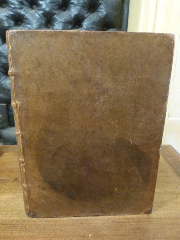 Inscriptions manuscrites anciennes d'appartenance à l'intérieur du 2e plat, en partie effacé ( trace de mouillure), apparaît le nom et la signature de Gabriel St Mihiel et la date 23 février 1697. Le titre du 2e volume n'a pas été relié dans l'exemplaire. plusieurs gravures sont courtes de marge externe et/ ou interne. Reliure frottée avec manque de cuir aux coins et coiffes, ors passés.(Reu-Bur)