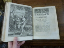 Paris, Augustin Courbe, 1662. In-4, pleine basane époque, dos à nerfs orné de fleurons et de roulettes dorés, de deux fleurs de lys et d'un dauphin couronné en pied, coupes ornées de roulettes dorées, toutes tranches mouchetées en rouge. Titre illustré, titre, 10 ff non chiffrés, 586 pp, 2 ff non chiffrés. Troisième édition contenant un titre illustré par François Chauvau et gravé par R. Lochon, une vignette de titre et 22 planches gravées par I. Couvay d'après Chauvau. Ex-libris contrecollé sur le contreplat "Ex libris Bibliotecae Capituli primatialis ecclesiae Viennensis". Coiffes et coins restaurés, fente en tête du mors supérieur, petit trou de ver en marge en début de volume.