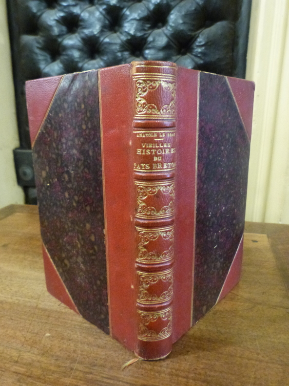 Paris, Honoré Champion, 1897. In-12 en demi-chagrin rouge au dos à faux nerfs orné de filets d'encadrement et d'arabesques dorées, tranche supérieure dorée. Vi, dont faux-titre, titre et préface, 344 pp, 1 f. de table. Frottements aux coiffes et aux coins sinon bel état. Seconde édition en grande partie originale et première mise dans le commerce, peu courante. La première édition est parue en 1892 à 30 exemplaires hors commerce seulement et ne contenait que 3 nouvelles. in "Bibliographie d'Anatole Le Braz" par Ollivier "Annales de Bretagne et des pays de l'ouest, année 1928"