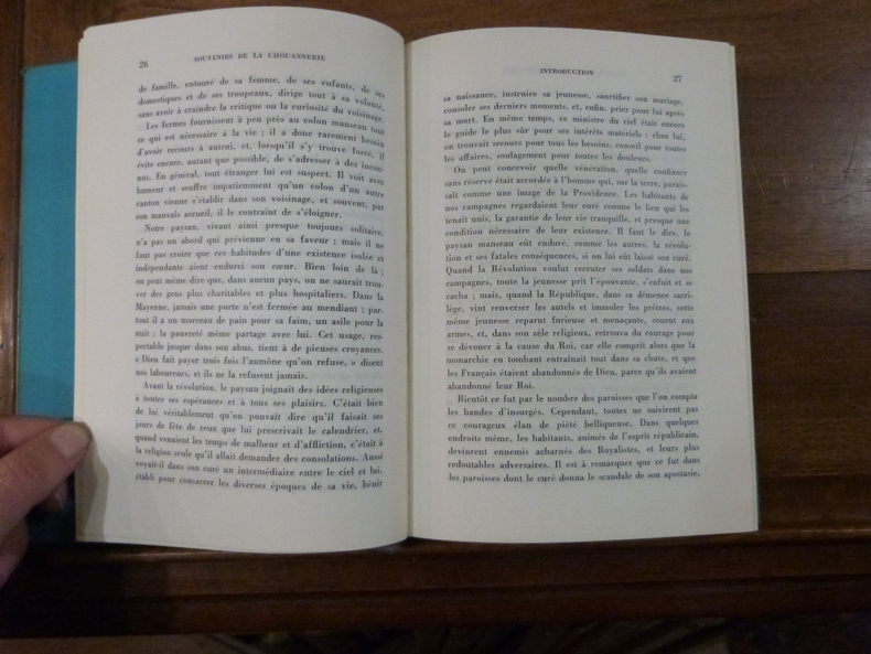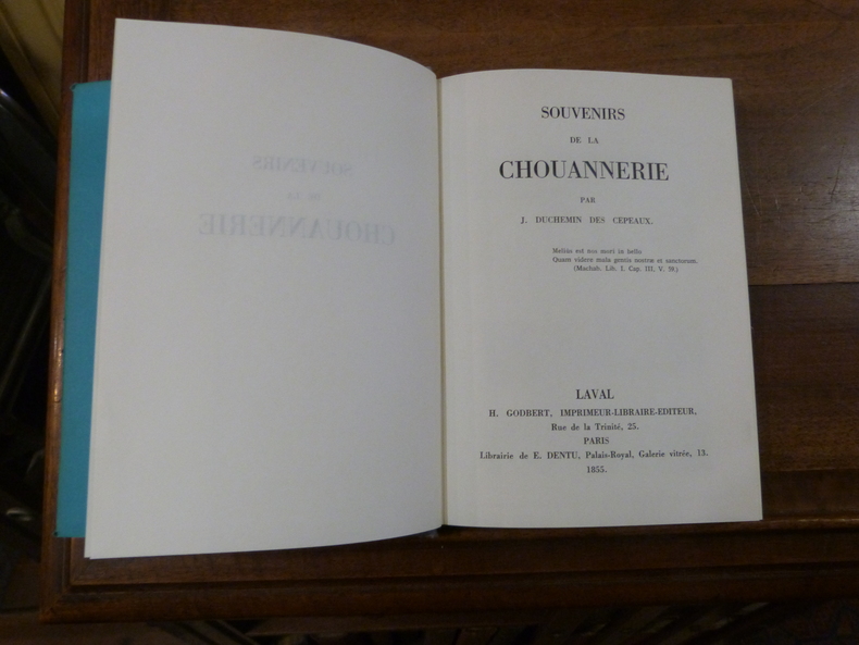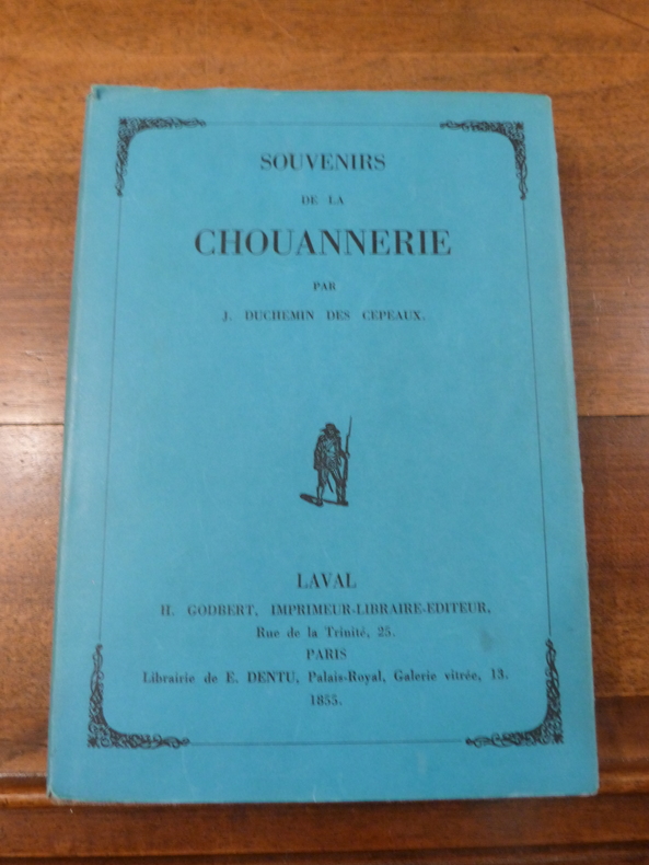 Une des toutes premières éditions d'un des grands classiques de l'histoire de la chouannerie. Son auteur a réuni de nombreux documents afin de rectifier les « vérités » affirmées par les historiens républicains. — "Il ne s'agit nullement de souvenirs ou de mémoires, mais Duchemin Des Cépeaux a réuni des documents et témoignages constituant une histoire de la Chouannerie." (Fierro, 463)