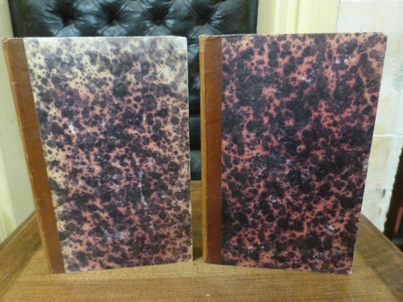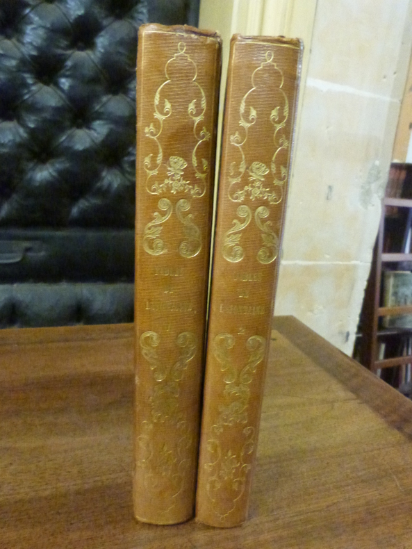 Paris, Armand Aubrée, sans date (1839). 2 tomes grand in-8 en demi cuir de Russie au dos lisse orné de filets et d'arabesques dorées. XXVI, 340 pp, 360 pp. Illustré de nombreuses vignettes en noir in texte, de deux titres gravés en chromolithographies, de 12 inter-titres gravés, et 12 planches par David. Dos insolé et frottements aux coins, quelques rousseurs, coiffes supérieures un peu abîmées, plat supérieur partiellement insolé. Bel exemplaire malgré tout.
