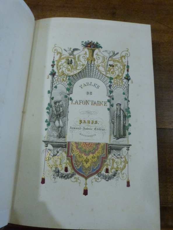« Premier état de l’édition originale des Fables de La Fontaine, l’un des livres les plus célèbres d’Occident, donnée par La Fontaine lui‑même, contenant les six premiers livres. Elle est rare et fort recherchée. » (A. Claudin, Bibliographie des Éditions Originales, n° 164). Tchemerzine, III, pp. 865-866 ; Brunet, III, p. 750 ; En Français dans le texte, n°105. « Edition originale des six premiers livres des Fables » (Tchemerzine, III, 866). L’exemplaire de M. A. Rochebilière (vendu en 1882) possédait un carton du feuillet oii, verso, de la vie d’Esope. Le feuillet original porte à la 6è ligne « donner le lustre » et à la 18è « amplete », cas du présent exemplaire. Cette édition originale est riche de 124 Fables parmi lesquelles « Le Chêne et le roseau », « Le Corbeau et le Renard », « La Grenouille qui veut se faire aussi grosse que le bœuf », « Le Laboureur et ses enfants », « Le Lièvre et la Tortue », « Le Loup et l’Agneau », « Le Lion et le Rat », « Le Meunier, son fils et l’Ane », « La Mort et le bûcheron », « Les Deux Mulets », « L’œil du Maître », « Le Pot de terre et le pot de fer », « Le Renard et la cigogne », « Le Renard et les raisins »... Elle avait été composée pour le Dauphin, fils de Louis XIV (dont les armes ornent la page de titre). Le fabuliste s’y montre fidèle à l’esprit de ses modèles, Ésope et Phèdre, qu’il se contente d’égayer par des traits nouveaux ou familiers, mais Les Fables de 1668 marquent une date capitale dans l’histoire du genre, ..., dès l’Antiquité, l’apologue était passé de la prose grecque... aux vers latins, ..., il appartient à La Fontaine de l’avoir annexé véritablement à la poésie... (En français dans le texte, n° 105). L’édition est illustrée de 118 eaux-fortes, signées François Chauveau, et de bandeaux, lettrines et culs-de-lampe gravés sur bois. Les gravures sont placées en tête des fables, encadrées d’un double filet et signées F. C. (François Chauveau) ; l’édition contient en outre quelques frises et quelques culs de lampe. La publication de la seconde série des Contes de La Fontaine en 1666, avait causé un grand scandale et Louis XIV qui n’aimait pas l’ami de Fouquet lui avait fait faire des observations par Colbert. La Fontaine comprit la nécessité de s’assagir et, le 31 mars 1668, fit paraître la première édition des Fables. L’œuvre eut un succès foudroyant et La Fontaine fut, dès ce moment, considéré comme l’Ésope français. « Cette belle édition originale, imprimée avec soin, est illustrée de petites gravures à mi-pages, signées F. C. (François Chauveau). Les fins de page sont ornées de culs-de-lampe typographiques dont quelques-uns sont d’un beau style. Les armoiries qu’on voit sur le titre sont celles du Grand Dauphin auquel le recueil est dédié. On y trouve les six premiers livres comprenant 124 fables qui paraissent ici pour la première fois, puis l’Épilogue ». (J. Le Petit, Bibliographie des principales Editions originales, p. 234.) La rareté des exemplaires de tout premier état conservés dans leur reliure de l’époque est légendaire. Jules Le Petit, dans sa bibliographie, ne mentionne que des exemplaires reliés au XIXe siècle : « Prix : Vente Solar (1860), bel ex. mar. r. par Trautz-Bauzonnet. 575 fr. – Vente du baron J. Pichon (1869), mar. r. par Trautz, I,360 fr. - Répertoire Morgand et Fatout (1878), ex. grand de marges (0,244 miliim.), mar r. par Trautz, 3400 fr. - Vente de Béhague (1880), mar. r. par Trautz, ex. de la vente Pichon, 2 700 fr. - Vente Guy-Pellion (1882), mar. r. doublé de mar. bl. par Trautz 3, 600 fr. - Vente J. Renard (1881), mar r. par Capé, I,400 Fr - Vente du Comte Roger du Nord (1884), très bel ex. (hauteur 0,247 millim.), mar. citron, par Trautz, I,700 fr ». Brunet (supplément VII, 747) ne mentionne aucun exemplaire en reliure ancienne. Tous sont reliés au XIXe siècle : « en mar. de Trautz, 855 fr. Double ; cet exempl. qui n'était pas des plus beaux, avait été payé 380 fr. ; en mar. de Duru, 495 fr. Chedeau ; en mar. de Trautz, fort beau, 1,360 fr. baron Pichon, revendu 2 050 fr. Benzon ; enfin, en mar. doublé de Trautz, un exempl. de toute beauté, est porté à 2, 800 fr. au catal. Morgand et Fatout ». Quant à Tchemerzine, il ne cite qu’un seul exemplaire relié en veau ancien, celui de Daulnoy vendu au prix considérable de 24 000 Fr. de l’époque. Les rares exemplaires connus en maroquin sont en reliure du XVIIIe, c'est-à-dire postérieurs d’au moins deux générations : celui de la comtesse de Verrue (aujourd'hui perdu) qui commença sa collection à son retour en France en 1700 (1670-1736 ; maroquin rouge, ancienne collection Alexandrine de Rothschild, Répertoire des biens spoliés, section « Livres », p. 400, n° 7715) et celui du comte de Toulouse également en maroquin rouge (1678-1737 ; localisation inconnue). Les deux exemplaires en veau à provenance attestées sont également reliés au XVIIIe siècle : celui du comte d'Hoym qui constitua sa collection entre 1717 et 1735 et mourut en 1737 (veau fauve, vente Hayoit, Sotheby's Paris, 28 juin 2001, n° 47, acquis par le commerce ; dos remonté et très restauré) et le second exemplaire de la comtesse de Verrue pour sa résidence de Meudon (Bibliothèque nationale ; reliure en veau très restaurée), catalogue de la vente Pierre Berès. Citons quelques-uns des exemplaires répertoriés en véritable reliure de l’époque : - en veau brun aux armes du Chancelier Séguier (cf. Brunet ; localisation et état inconnus). - en veau brun, bibliothèque privée. - l’exemplaire Rochebilière de second état mesurait 225 mm de hauteur (n°164). - en 2007, un exemplaire de second état en vélin ancien, mesurant 232 mm de hauteur, avec seulement deux corrections manuscrites de l’époque aux pages 57 et 176, était vendu 195 000 €. - en 2010