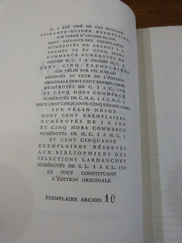 Paris, Aux éditions du seuil, 1960. In-8, broché. 250 pp, 1 p non chiffrée. Edition originale, tirage limité numéroté à 585 exemplaires, celui-ci étant un des 75 sur vergé d'Arches blanc, tirage de tête, portant le numéro 10. Envoi de l'auteur sur la page de faux-titre. Très bon état.