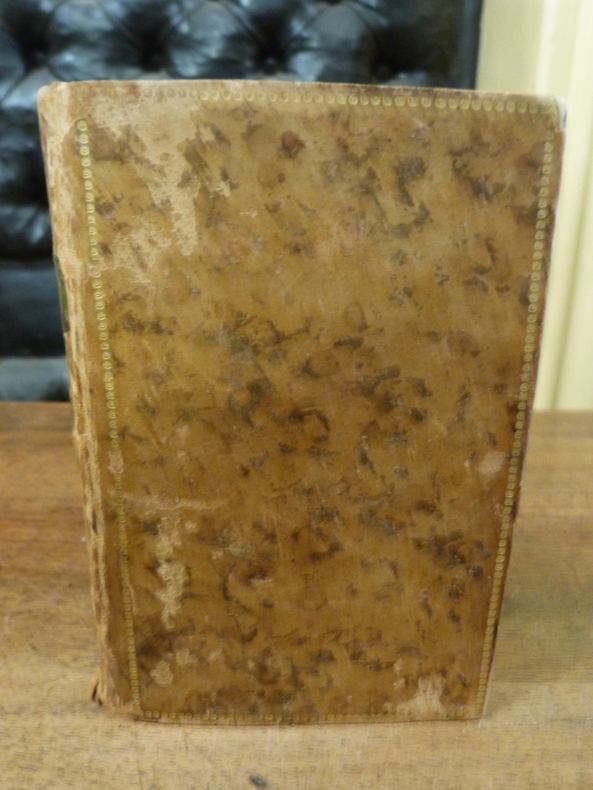 Amsterdam, et Paris, chez Nyon, 1788, in-18vo, 2 ff. + XII + 180 p. + 11 planches de figures gràvées dont le frontispice (coin marg. d'une pl. arraché), front. taché, çà et là taché princip. dans les marges, lég. jauni, page garde en papier marbré devant manque, reliure en cuir, pièce de titre rouge au dos, dos sobrement orné en or, plats encadrés d'un triple filet doré, frotté, coins et un bord latér. éraflés, plat infér. taché, tranches dorées (dorure partiel. passée), .