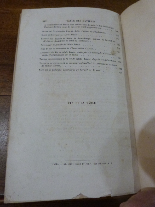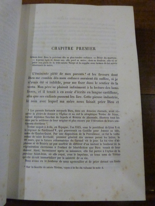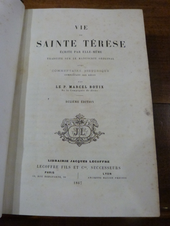 Les personnes ayant établi la présente édition, ont préféré orthographier le nom de Térèse sans h, car c'est ainsi que la Sainte elle-même écrivait son nom.