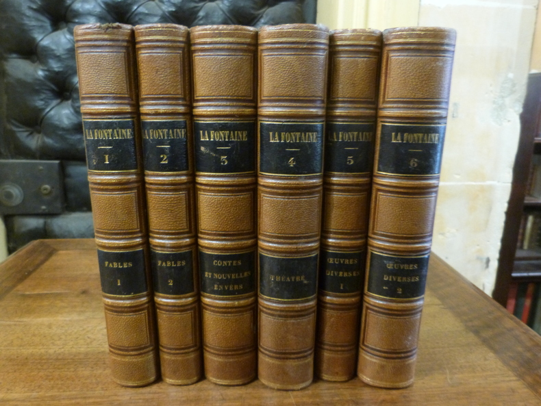 Tome 1 et 2 Fables, tome 3 contes et nouvelles en vers, tome 4 théâtre, tome 5 et 6 oeuvres diverses.