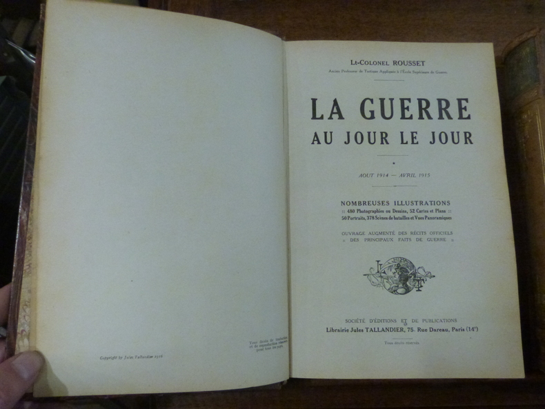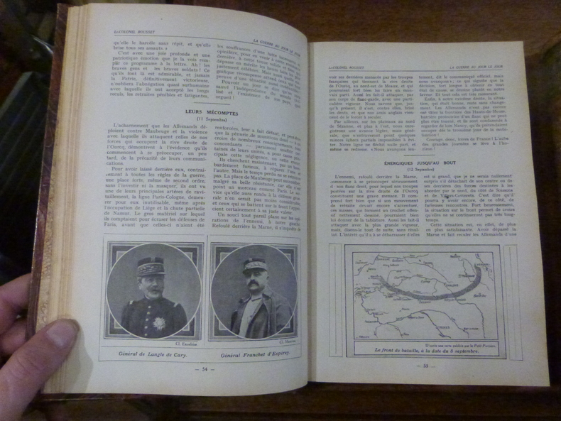 1920 A Paris, Société d'Editions et de Publications, Librairie Jules Taillandier - 1920 - 6 vol Grand in-8, demi percaline rouge à coins. 647 + 653 + 653 + 674 + 589 + 587 pages. 480 photographies ou dessins, 52 cartes et plans : 50 portraits, 378 scènes de batailles et vues panoramiques. Ouvrage augmenté des récits officiels et des principaux faits de guerre - PREVOIR AUGMENTATION DE FRAIS DE PORT