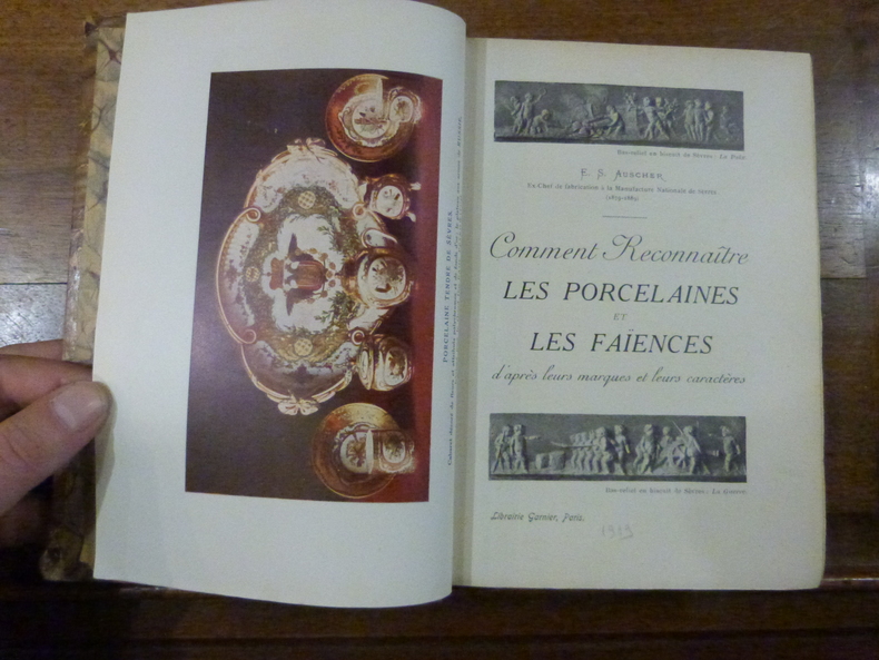 Paris, Garnier, sans date ( 1928) ; 1 volume in-8°, pleine toile gris- bleu de l'éditeur, titre en blanc au dos et 1er plat , coverture imprimée conservée; VIIpp., Ip.nch., 494pp. Frontispice en couleurs, ouvrage illustré en noir à pleine page de photographies de faiences avec de très nombreuses marques et signatures reproduites .