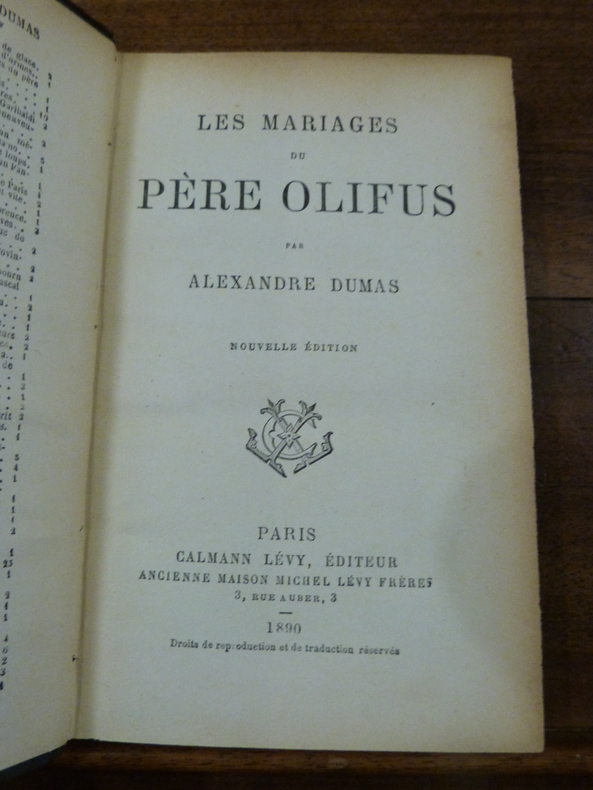 Le Speronare 121 pages - Le Capitaine Aréna 69 pages - Le Corricolo 140 pages - Le Trou de l'Enfer 79 pages - Dieu Dispose 130 pages - La Boule de Neige 34 pages - Une Vie d'Artiste 46 pages - Conscience l'Innocent 89 pages - Le Père la Ruine - Souvenirs d'Anthony 107 pages - Les Mille et un Fantômes 46 pages - La Femme au collier de velours 41 pages - Les mariages du père Olifus 46 pages - Le Testament de M. de Chauvelin 26 pages - Un dîner chez Rossini 8 pages - Les Gentilshommes de la Sierra-Morena 11 pages - Le lièvre de mon grand-père 18 pages - Pascal Bruno 25 pages - Jane 23 - Cécile 48 pages.