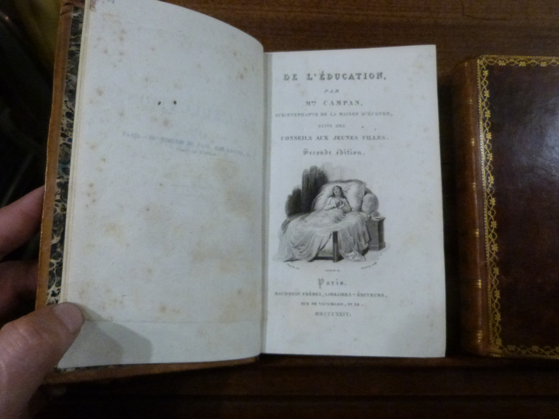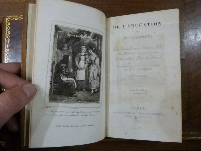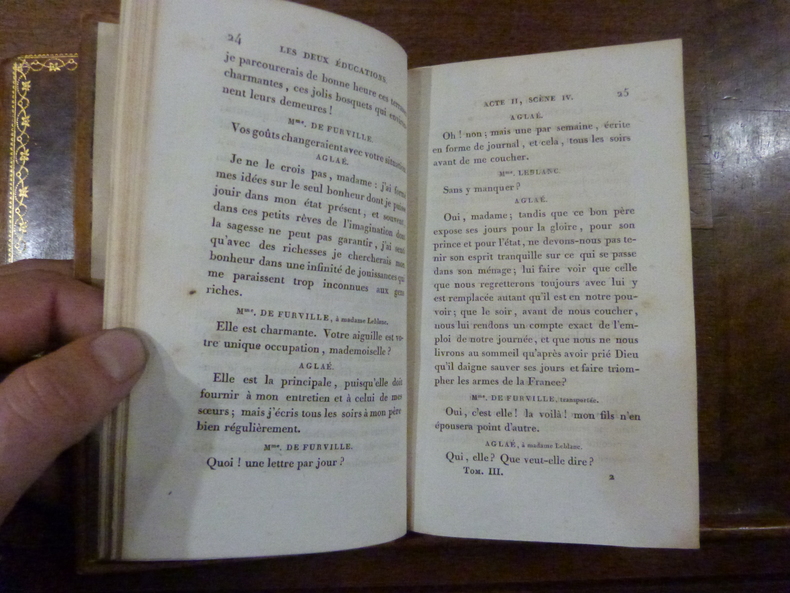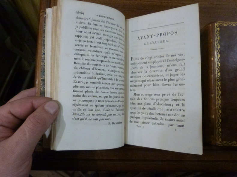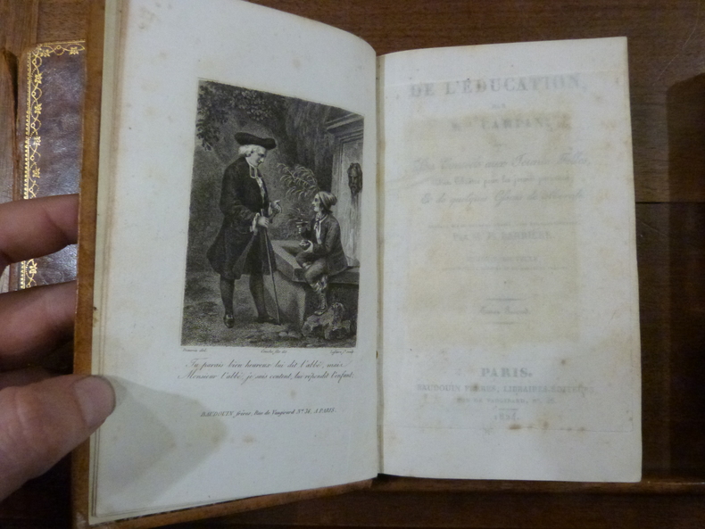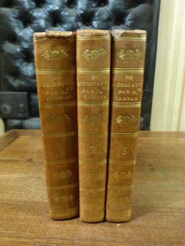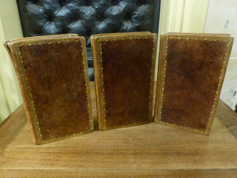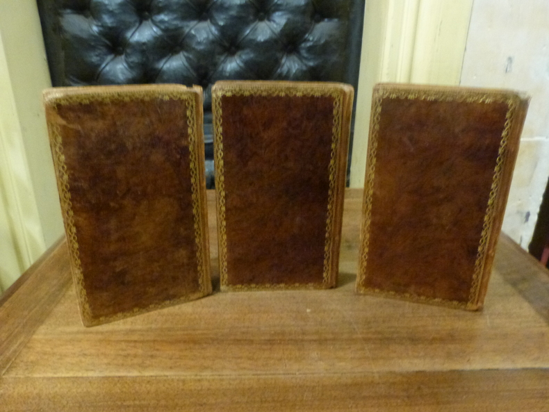 Paris, Baudouin, 1824. 3 tomes in-12 en pleine basane racinée au dos lisse orné de fleurons et filets dorés. Plats encadrés d'une guirlande et d'une roulette dorée. 1 f. blanc, faux-titre, titre, 404 pp, 1 f. blanc, 1 f. blanc, faux-titre, titre, 356 pp, 1 f. blanc, 1 f. blanc, faux-titre, titre, 352 pp, 1 f. de table, 1 f. blanc. Illustré de 1 titre-frontispice et 2 frontispice. Mors du tome 1 fendu sur 3 cm. Petit manque de cuir à la coiffe du tome 1. Quelques rousseurs.