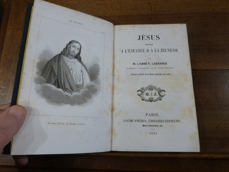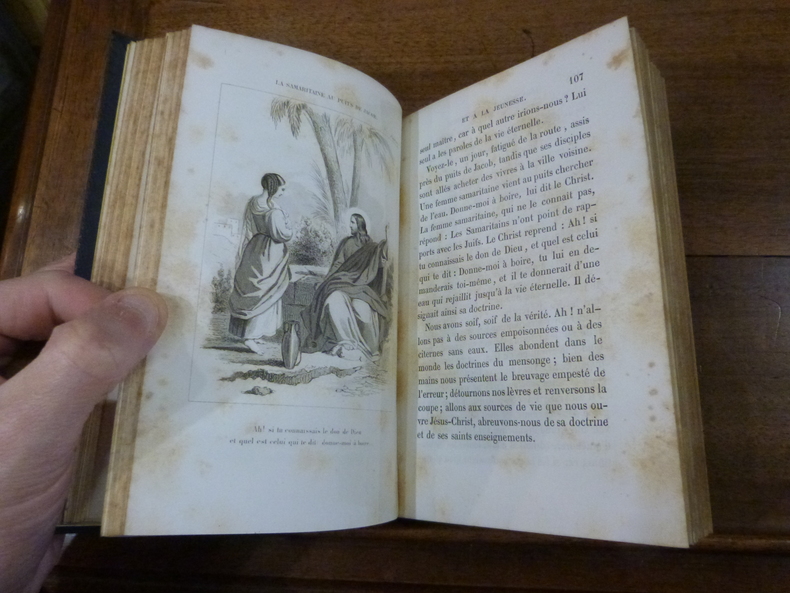 Paris, Gaume frères, 1851. In-12, percaline romantique époque, dos lisse orné d'un décor doré, titre doré, plats encadrés d'un décor à froid et ornés en leur centre d'un décor doré, toutes tranches dorées, faux-titre, titre, 339 pp. Ouvrage illustré d'un frontispice et de 9 gravures sur acier hors texte et orné de bandeaux, lettrines et culs-de-lampe. Coins tordus, rousseurs éparses.