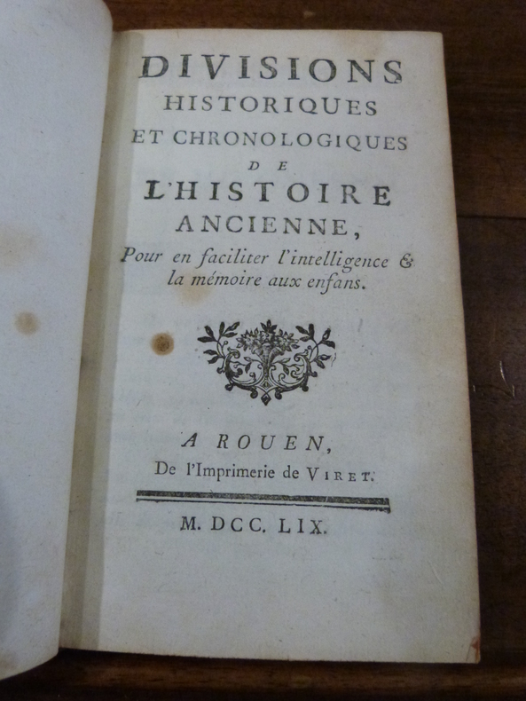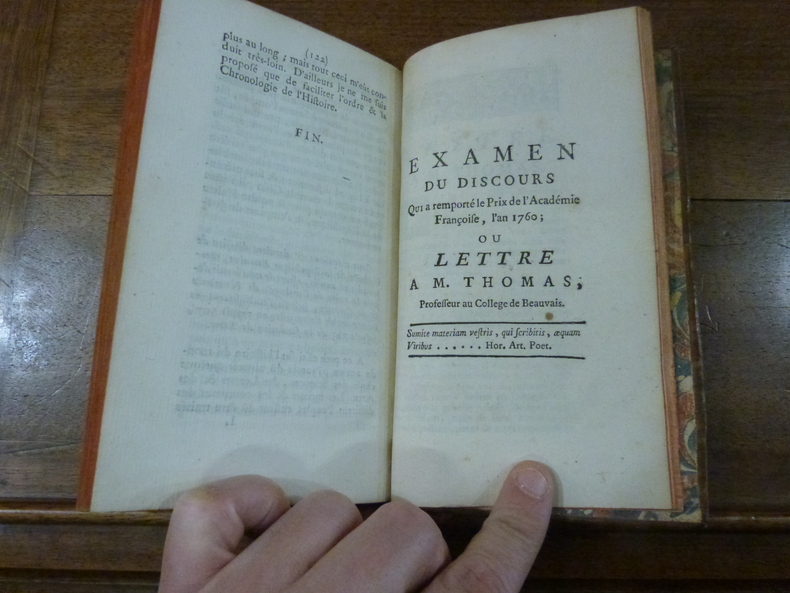 Rouen, Imprimerie de Viret, 1759. In-12, plein veau époque, dos à nerfs orné de fleurons dorés, titre doré, toutes tranches rouges. Titre, 3 ff non chiffrés, 122 pp; 20 pp. Coupes et mors légèrement frottés, petite travail de ver sur le mors inférieur (sans gravité), quelques rousseurs.