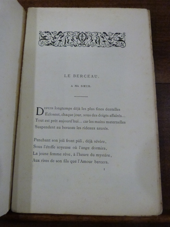 Toulon Rumèbe 1901. In-16 158pp 3ff n ch. Demi basane aubergine à coins signés, dos lisse orné en long de filets dorés, pièce de titre ovale de maroquin bleu nuit, couverture conservée, rel époque. Orné en frontispice d'un portrait de l'auteur d'après une photographie.