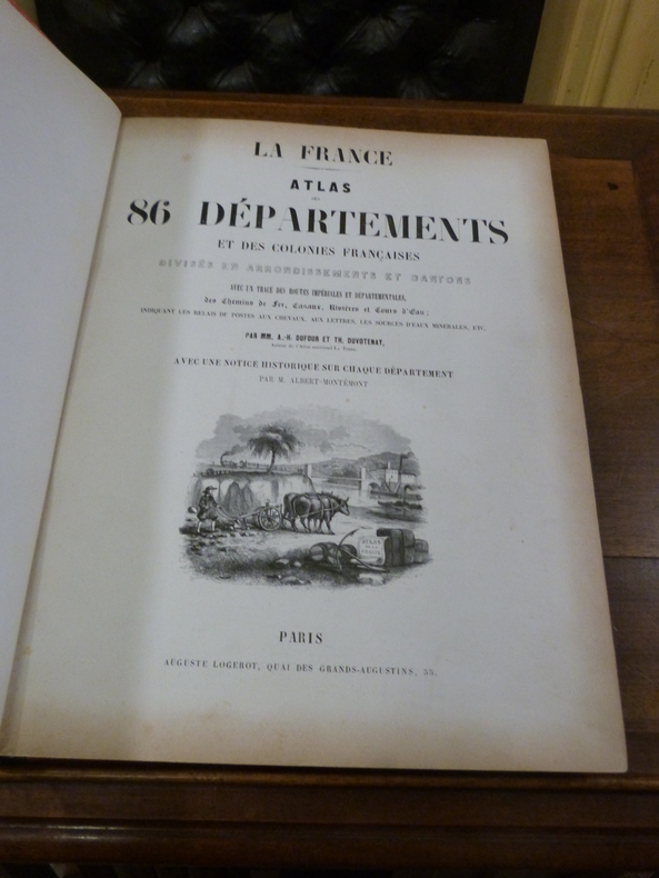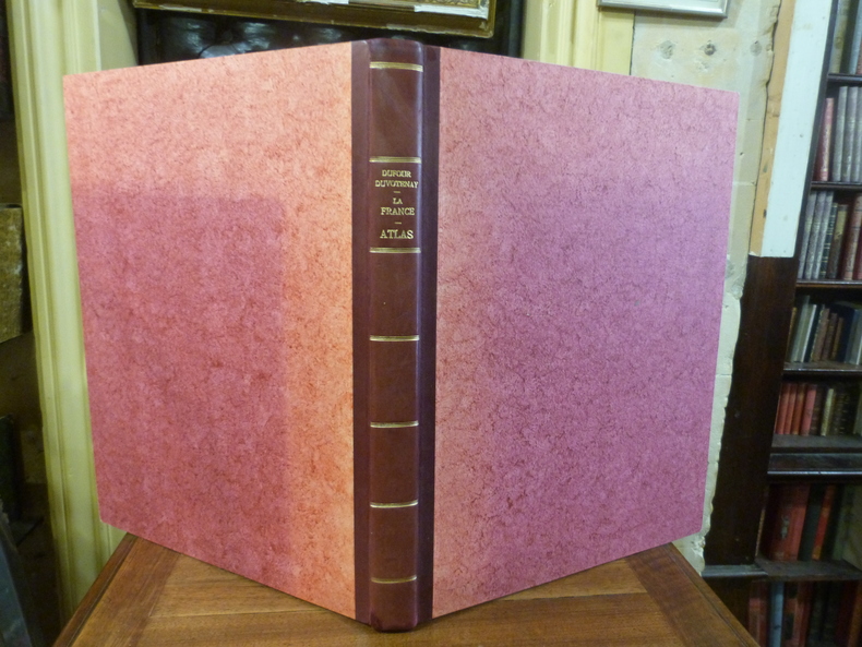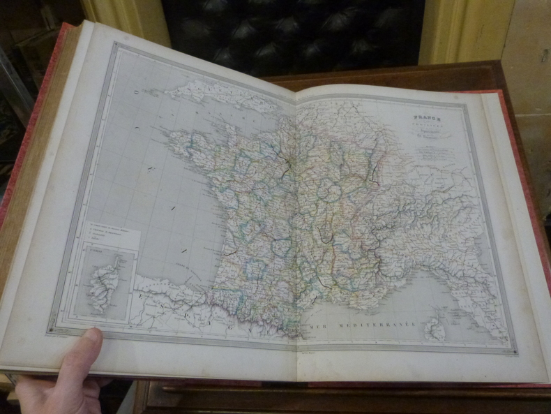 Paris, Logerot, sans date (circa 1860). In-folio, demi basane postérieur, dos lisse orné de filets dorés, titre doré. Titre, 1 p non chiffrée, 88 pp, 2 pp non chiffrées. Rare ouvrage contenant 89 cartes, dont 1 carte double de la France. Quelques frottements au dos et sur les coiffes, plats insolés, quelques rousseurs, certaines cartes sont brunies.