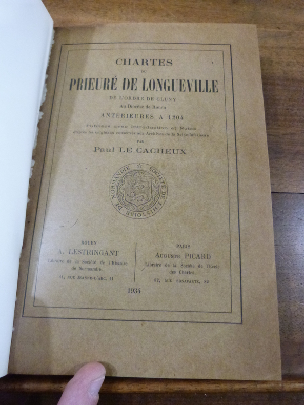 Rouen, Lestringant et à Paris, Picard, 1934. In-8, demi basane, dos à nerfs, titre doré. XXVII, 137 pp. Ouvrage imprimé sur papier vergé, couvertures conservées. Annotations dans les marges à l'encre et au crayon, passages soulignés à l'encre et au crayon (certaines annotations ont été coupées quand l'exemplaire a été relié). Dos insolé, plats partiellement insolés, frottements au dos et sur les coiffes.