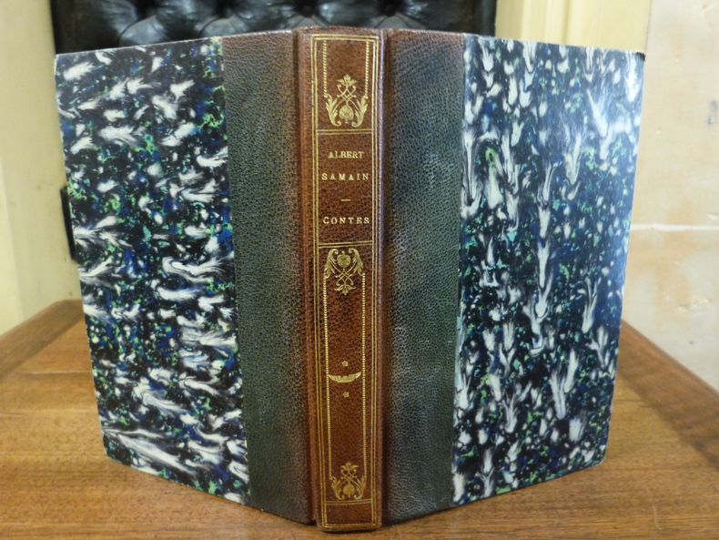 Paris Mercure de France, 1911, in-12, élégant chagrin à dos mosaïqué, couvertures conservées, 186p. Dos légèrement passé sinon bel exemplaire dans une belle reliure.