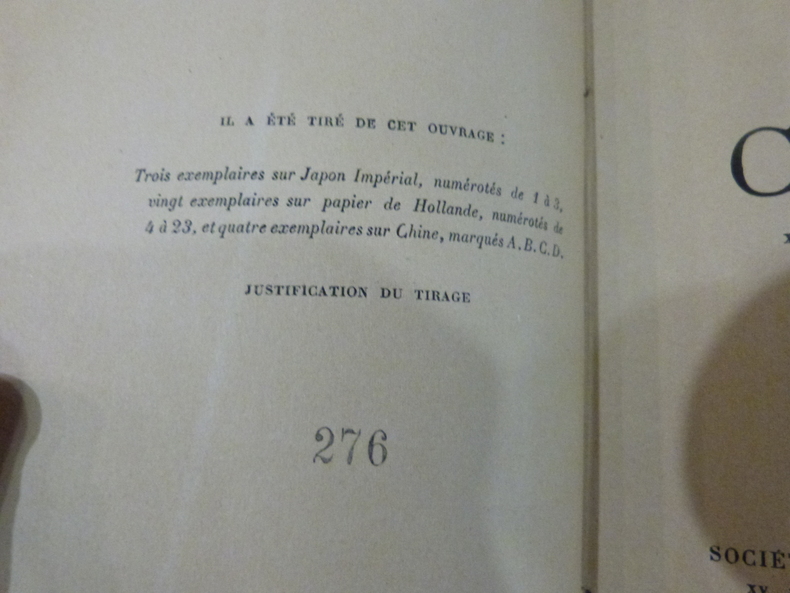 Éd. orig. du service de presse (timbre à sec du service sue la couverture et la page de garde, sur papier courant. Il n'a été tiré que 27 ex. num. sur grands papiers. Exemplaire du premier mille portant le n°749.