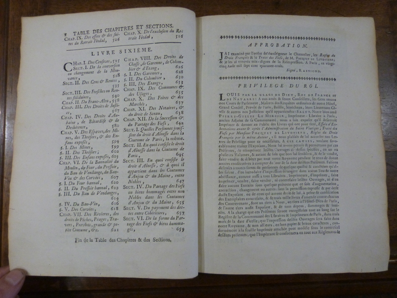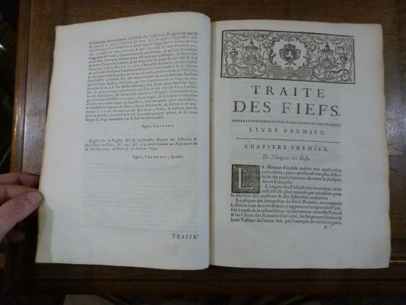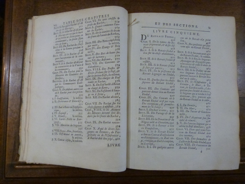 Seconde édition conforme à la première, toutes deux posthumes, due saux soins de son fils Jean-André.Traité de référence en la matière, avec une table importante en fin de volume qui facilite son utilisation. Dans sa 4ème lettre sur l'étude du droit français, Camus réserve cette appréciation sur le présent ouvrage :"Il seroit à désirer qu'il en eut sur toutes les matières de pareils à ceux de Pocquet de Livonnière sur les fiefs".Jurisconsulte français, grand connaisseur de droit coutumier, Claude Pocquet de Livonnière est né à Angers en 1652, mort en 1726. Il fut conseiller au présidial d'Angers, professeur de droit français à la faculté d'Angers (1689), recteur de l'université, directeur et secrétaire perpétuel de l'Académie des belles-lettres. Pocquet de Livonnière était un des juristes les plus instruits de son temps. On a de lui : Coutume du païs et duché d'Anjou (Paris, 1725, 2 vol. in-folio) ; Traité du droit français (Paris, 1730), en collaboration avec son fils Gabriel. Saffroy, I, 8533. Camus, 1567. Dupin, 1771. - - VENTE PAR CORRESPONDANCE UNIQUEMENT - LIEN DE PAIEMENT, NOUS CONSULTER.