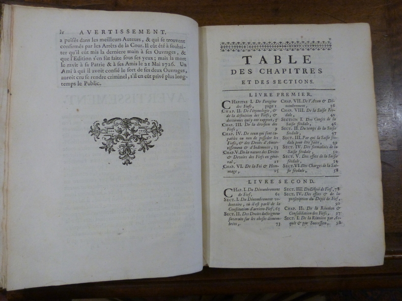 "Ce traité servira à soulager la mémoire de ceux qui ne sont pas encore versés dans les lois: il pourra même satisfaire la curiosité de ceux qui souhaiteront approfondir la matière des fiefs (...). Cet ouvrage pourra également être fort utile aux seigneurs: ils y trouveront suscintement ce qu'ils ont droit de soutenir et de prétendre (...)". Coiffes et mors un peu frottés, 1 coin lég. émoussé, intérieur frais, bel ex. - Frais de port : -France 6,9 € -U.E. 9 € -Monde (z B : 15 €) (z C : 25 €)