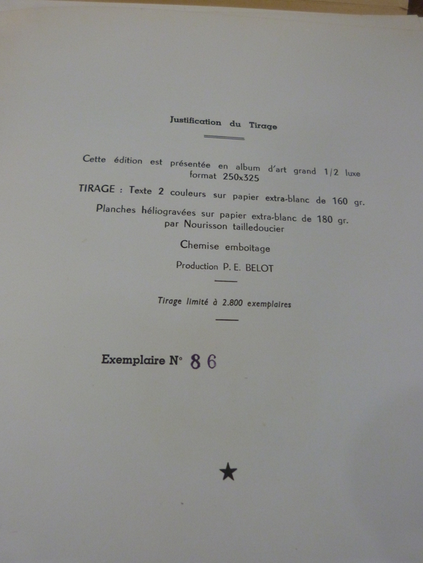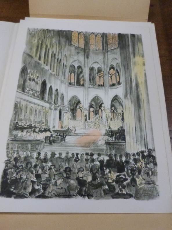 Paris, Union du livre et des arts, 1955. In-folio, en feuilles sous chemise à rabats au dos toilé, plat supérieur illustré des armes de Paris. Sans pagination. Edition originale illustrée de 20 planches en couleurs par Berthommé St André, tirage limité à 2800 exemplaires, celui-ci portant le numéro 86. Dos et plats un peu piqués, quelques rousseurs.