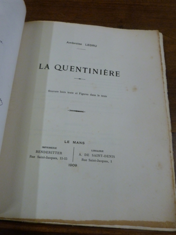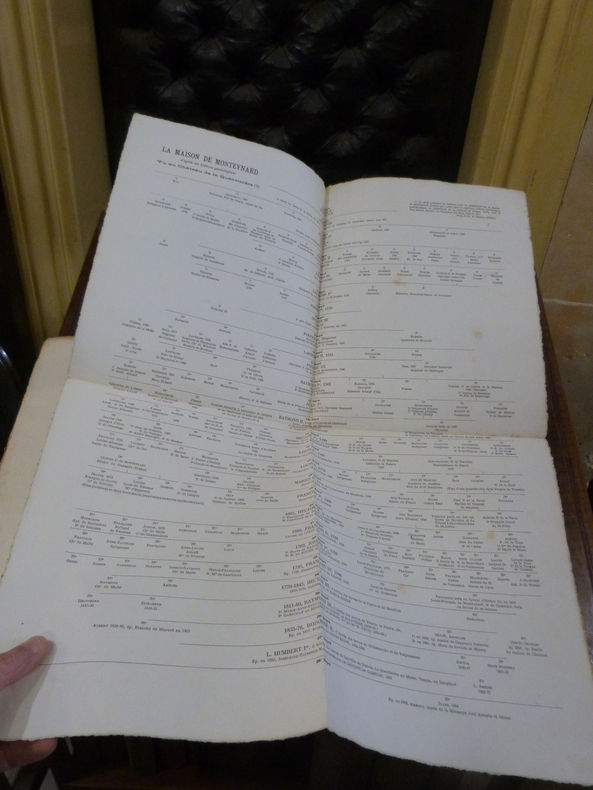 Le Mans, Benderitter, Saint-Denis, 1909. Plaquette in-4, brochée. Faux-titre, titre, 36 pp. Tirage limité à 205 exemplaires, celui-ci étant un des 200 sur papier à la cuve, portant le numéro 193. Ouvrage illustré d'une gravure hors-texte et de figures in-texte, 2 tableaux généalogiques dépliants en feuillet volant (c'est 2 fois le même). 5ème fascicule des Châteaux de la Sarthe. Pliures et taches sur les plats, faux-titre roussi, quelques rousseurs, brochage fragile.