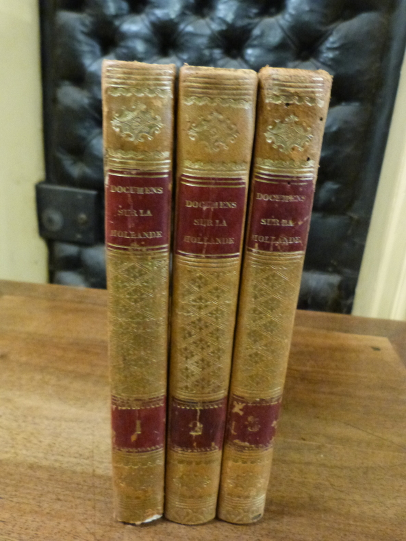 1820 Paris : Aillaud, Fantin, Amsterdam : Samuel Delachaux, 1820, 3 tomes en 3 volumes in-8 de (4)-333 pp. ; (4)-432 pp. ; (4)-338 pp., très jolie reliure de l'époque de plein veau glacé bleu, dos à nerfs ornés de roulettes et soulignés de triple filets dorés, caissons ornés de fers romantiques dorés, encadrements de triple filets dorés accompagnés d'un encadrement de roulettes à froid, dentelle intérieure dorée, sans rousseurs, très bel exemplaire.