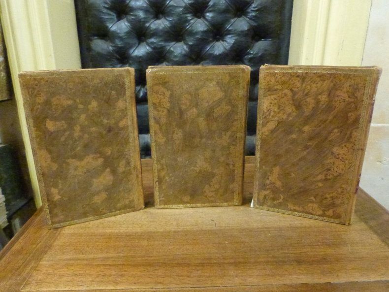 Paris, AIllaud, Fantin, Delachaux, 1820. 3 tomes in-8 en demi-basane racinée au dos lisse orné de fleurons dorés et aux plats encadrés d'un filet et d'une roulette dorés. 1 f. blanc, faux-titre, titre, 333 pp, 1 f. bl. ; 1 f. blanc, faux-titre, titre, 432 pp, 1 f. blanc. 1 f. blanc, faux-titre, titre, 338 pp, 1 f. blanc. Manque une coiffe, un petit manque de cuir à un dos, brunissures en marges des premiers et derniers feuillets de tomes mais sinon bon état.