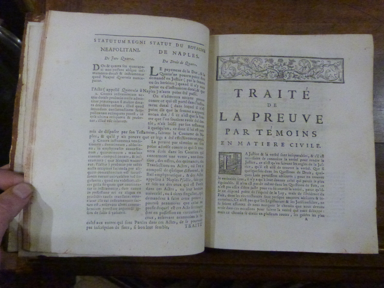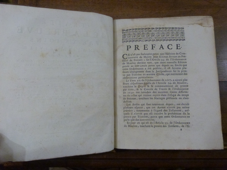 Paris, Montalant, 1738. In-4 en pleine basane au dos à nerfs orné de fleurons dorés. manque le cahier Bbbb (pages 561-68) remplacé par un cahier Bbb, 12 ff, dont titre, préface, table, article de l'ordonnance de Moulin, 695 pp. Manques de cuir sur la reliure, mouillures en marge supérieure sur les 10 premiers feuillets, incomplet du texte pages 561-68. Exemplaire vendu en l'état.