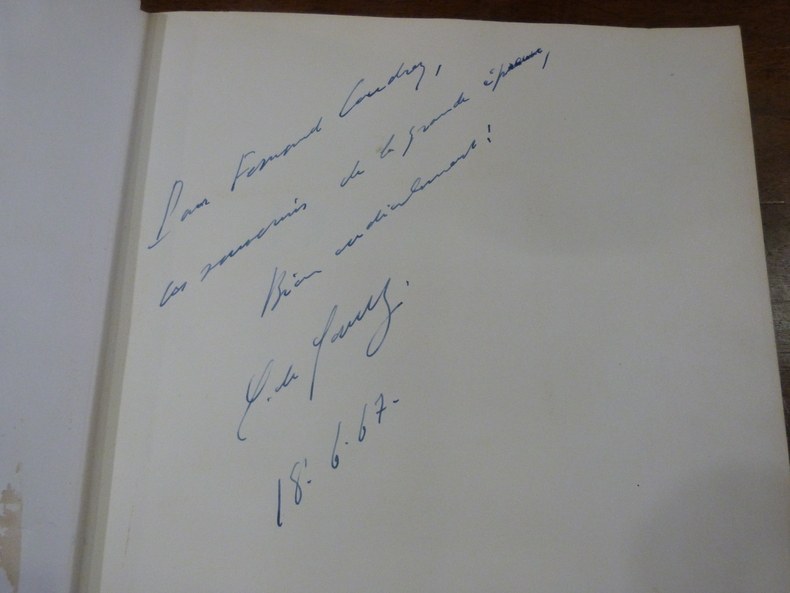Les Mémoires du général de Gaulle : exemplaire offert à Sylvie Genevoix. Paris, Plon, (30 août) 1970 et (6 février) 1971. Paris, Plon, (8 mai) 1973, (13 mai) 1976 et (25 septembre) 1974. 2 vol. (135 x 210 mm) de 314 et 223 p. Cartonnage bleu éditeur. 3 vol. (135 x 210 mm) de 680, 712 et 653 p. Cartonnage bleu éditeur. Edition originale des Mémoires d'Espoir. Envoi signé: «Pour Mademoiselle Sylvie Genevoix, en respectueux hommage et témoignage. C. de Gaulle. 27.10.70». Retirage des Mémoires de Guerre.
