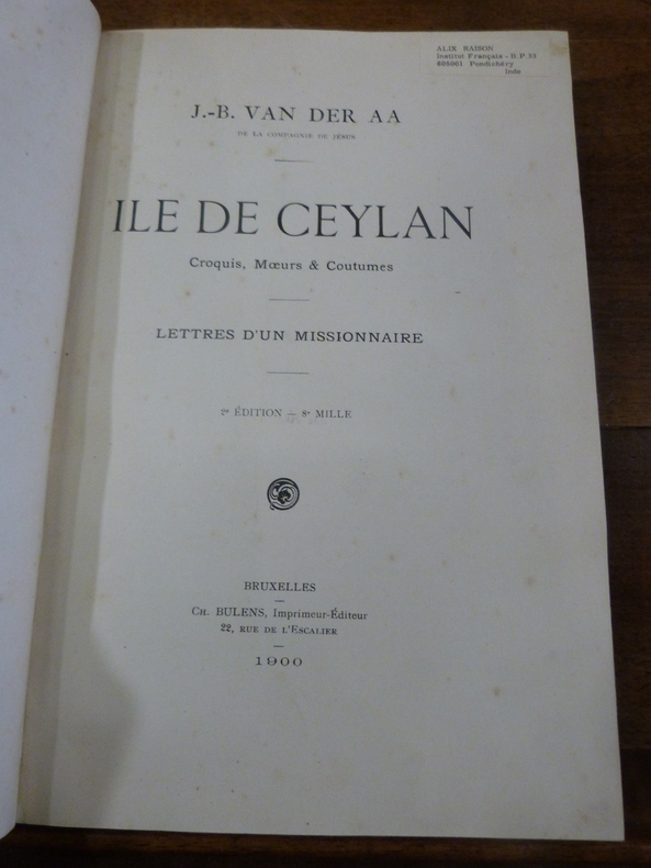 Sommaire : le navire - le mal de mer - colombo - les petits boeufs bossus - le pays de kandy - le bétel - types singhalais - au foot ball - curry et encore curry - les bains des indigènes - nos domestiques - bénédiction etc. Classification Dewey : 959-Asie du Sud-Est