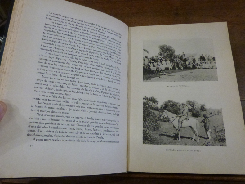 Paris, Floury, 1924. Grand in-8, demi basane à coins époque, dos à nerfs, titre doré. 310 pp, 5 pp non chiffrées. Edition originale posthume illustrée d'un portrait photographique de l'auteur en frontispice et de 15 planches hors-texte. Exemplaire truffé d'une photographie des membres de l'expédition traversant un cours d'eau à pied et à cheval; elle est datée de novembre 1910 à l'encre noire. La photographie est contrecollé sur papier et montée sur onglet. Coiffes frottées, papier jauni, rousseurs (essentiellement sur les tranches).