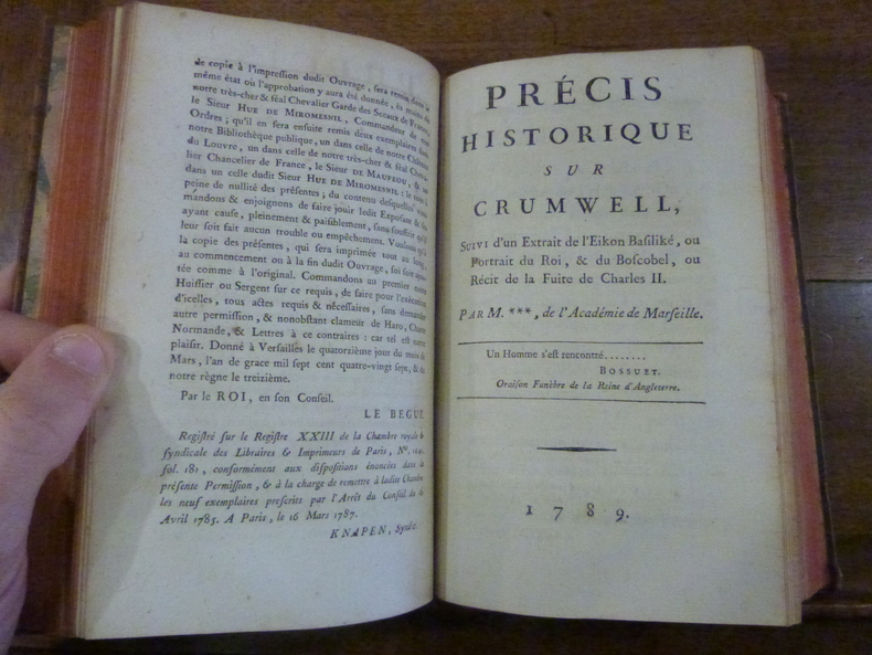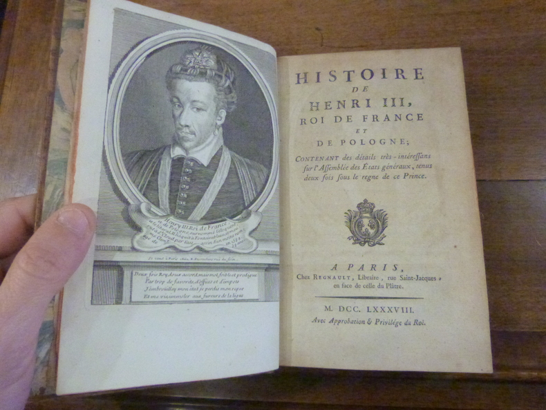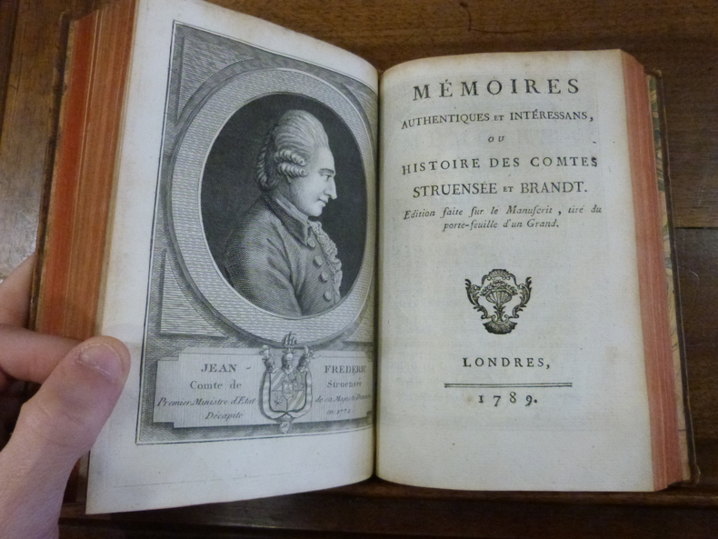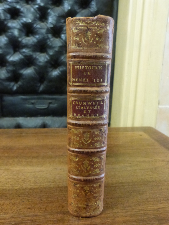Paris, Regnault, 1788; Sans lieu, sans nom, 1789; Londres, sans nom, 1789. In-8, pleine basane époque, dos à nerfs orné de fleurons et de filets dorés, titre doré, toutes tranches rouges. Titre, 244 pp, 1 f non chiffré; titre, 189 pp, 1 p non chiffrée; faux-titre, titre, 255 pp. Le premier ouvrage est illustré d'un portrait de Henri III en frontispice, le troisième d'un portrait du comte de Struensée en frontispice. Manque sur la coiffe supérieur, plats un peu frottés, 3 coins un peu émoussés, quelques rousseurs.