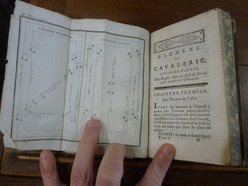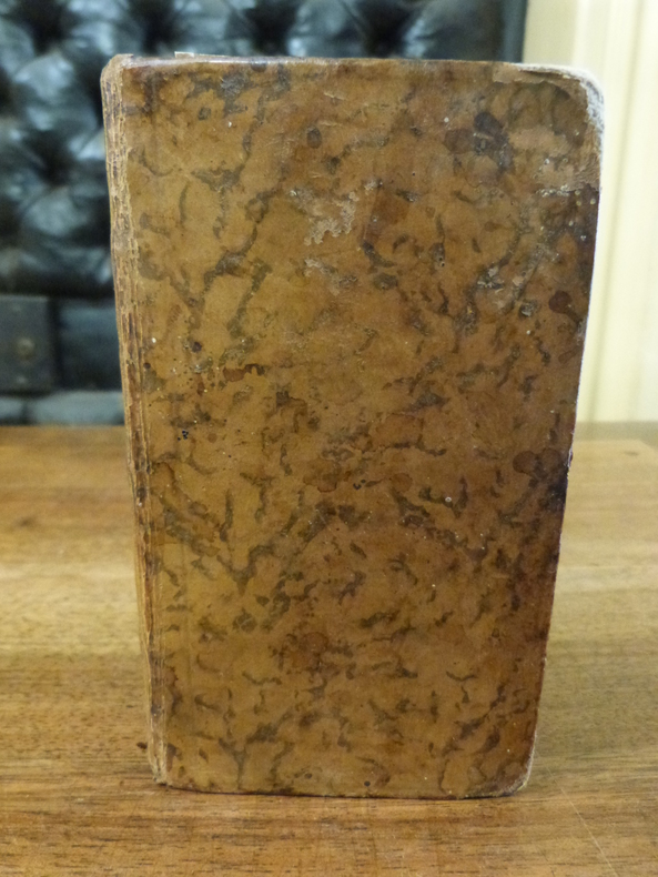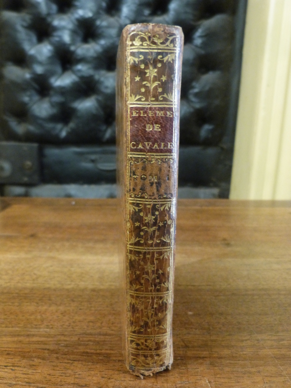 Paris, La Compagnie des Libraires, 1768. 2 parties en 1 volume in-16, plein veau époque, dos lisse orné de filets et de fleurons dorés, titre doré, coupes filetées, toutes tranches marbrées. 334 pp. Ouvrage illustré de 4 planches dépliantes. Coins émoussés, coiffes inférieures manquantes, manque la troisième partie.
