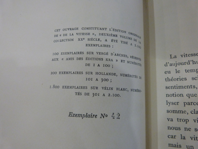 Paris, Editions Kra, 1929. In-12 broché à grande marge sous couverture rempliée. 68 pp, 1. f Edition originale à tirage limité et numéroté à 2100 exemplaires. Celui-ci étant un des 100 du tirage de tête sur vergé d'Arches, portant le numéro 42. Exemplaire non-coupé. Certaines des marges sont légèrement brunies, sinon très bon état.