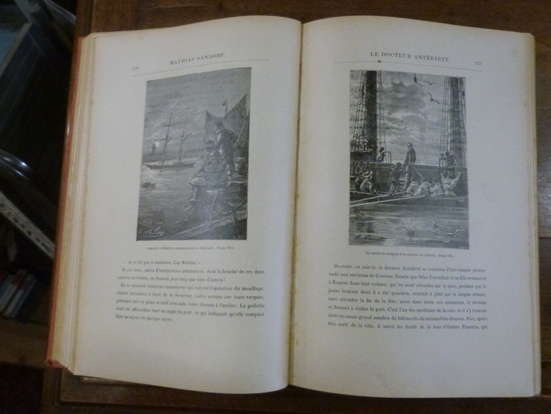 Paris Jean de Bonnot 1978 in 8 (21x14,5) 2 volumes reliures plein cuir bleu ornées de l'éditeur, têtes dorées, illustrations de l'époque de l'auteur. Tome 16: Mathias Sandorf, 1ère partie, 367 pages [3]. Tome 17: Mathias Sandorf, 2ème partie - Les Indes Noires, 335 pages [3]. Ce titre est bien complet en 2 volumes. Bel exemplaire ( Photographies sur demande / We can send pictures of this book on simple request )