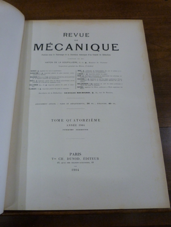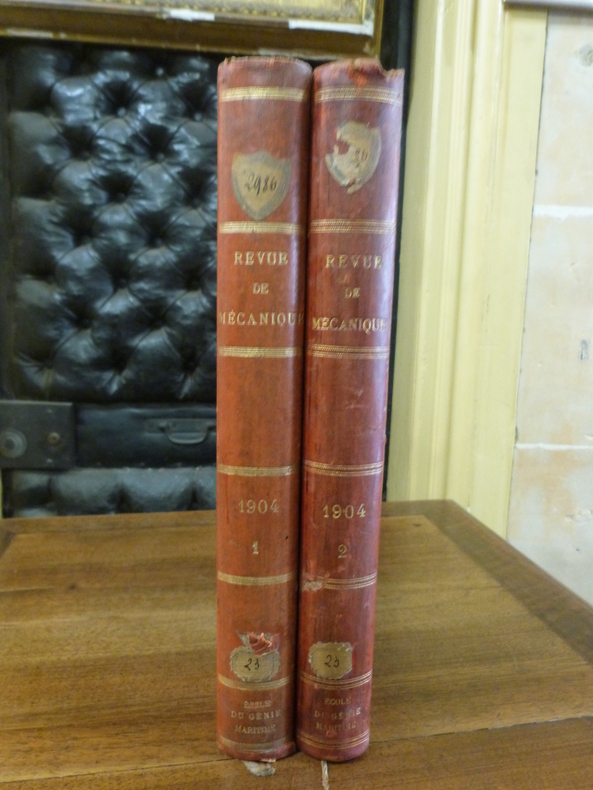 Paris, Dunod, 1904. In-4 en demi-basane au dos lisse orné de filets dorés. 639 pp, 631 pp. Nombreuses illustrations in et hors-texte en noir. 2 coiffes abîmées, les autres frottées, étiquettes et épidermures au dos, papier légèrement jauni, coins frottés, cachet de l'école du génie maritime sur les pages de titre et de faux-titre.