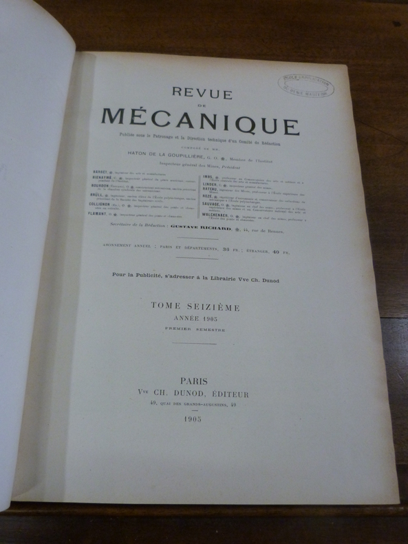 Paris, Dunod, 1905. In-4 en demi-basane au dos lisse orné de filets dorés. 623 pp, 635 pp. Nombreuses illustrations in et hors-texte en noir. Coiffe supérieure du tome II abîmée, frottements sur le cuir et les coupes, étiquettes au dos, papier légèrement jauni, cachet de l'école du génie maritime sur la page de titre et de faux-titre du tome I.