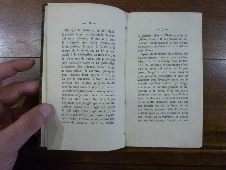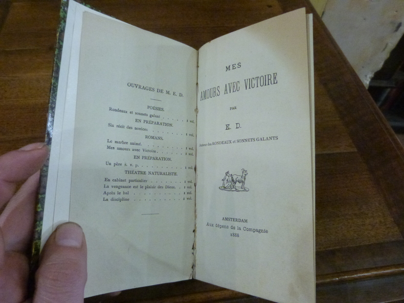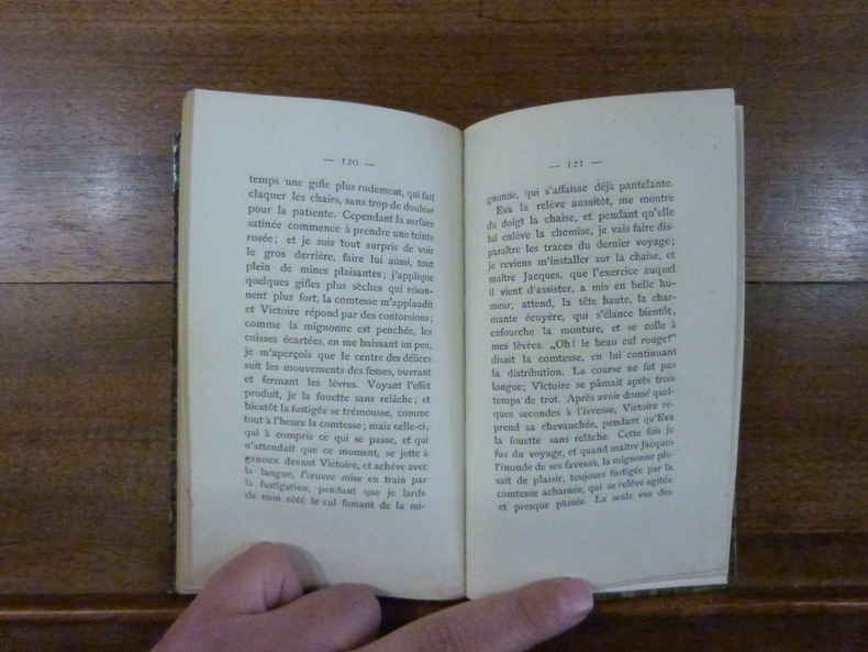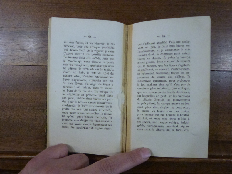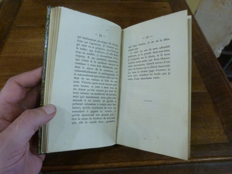 Amsterdam, Aux dépens de la compagnie, 1888. In-12 dans une reliure en demi percaline à la bradel postérieure. 140 pp dont faux-titre et titre. les dix premières pages pages 67 anciennement recollées, la reliure semble avoir été réemboitée. Edition Originale très rare de ce livre pornographique très cru dont on sait peu de chose de l'auteur.