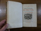 Amsterdam, Ledet, 1738, un volume in 8 relié en plein veau glacé, dos orné de fers dorés, tranches rouges (reliure de l'époque), (habiles restaurations aux mors), 1 portrait de NEWTON, 1 portrait de VOLTAIRE, (1), 399pp., (1pp.), 6 planches hors texte, 1 tableau dépliant, nombreuses figures dans le texte