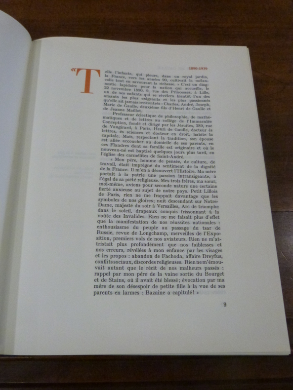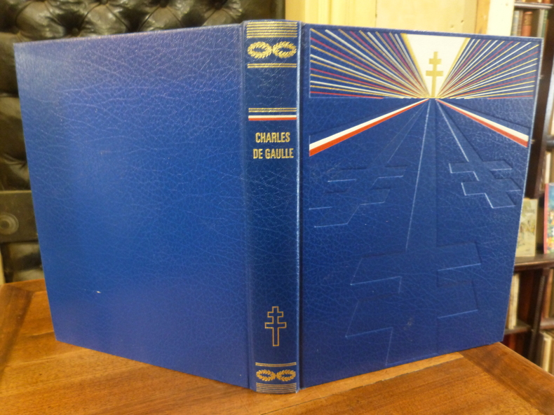 Genève, éditions de Crémille 1972 In-4 28,5 x 22 cm. Reliure de l’éditeur plein skivertex bleu-roi, premier plat et dos gaufrés de la Croix de Lorraine et des couleurs nationales, 397 pp., nombreuses illustrations en noir et blanc et en couleurs, dans le texte et hors texte. Exemplaire en bon état. Un certain de Gaulle. - La guerre. - Le pouvoir, le RPF et la traversée du désert. - Le grand retour et le drame algérien. - Les grands desseins politiques. - La fin d’un règne.