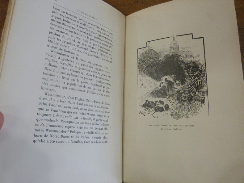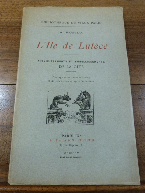 ROBIDA AlbertL'île de Lutèce. Enlaidissements et embellissements de la cité- H. Daragon, Paris 1905, reliure cartonnée, couverture conservée. Edition originale, un des 500 exemplaires numérotés sur alfa, non numéroté. Ouvrage illustré d'une eau-forte ainsi que de 22 croquis de l'auteur.Enrichi d'un bel envoi de Robida à Roger Miles
