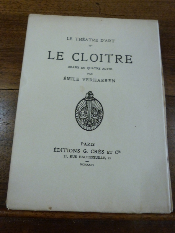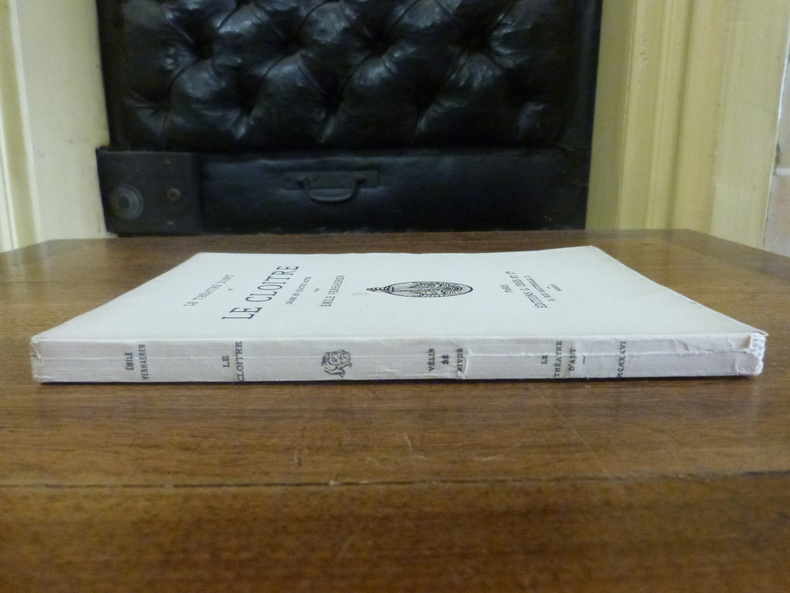 Édition décorée de compositions originales dessinées et gravées sur bois par René Pottier. Tirage à 1100 exemplaires. Un des 1055 exemplaires sur papier vélin de Rives (n° 630). Le Cloître a été représenté pour la première fois à Bruxelles, au Théâtre du Parc, le 20 février 1900, et ensuite à Paris, sur la scène du Théâtre de l'Œuvre, le 8 mai suivant. Notre reliure, signée "G. Auger" pourrait être l'œuvre de l'illustrateur et graveur Gaston Auger-Stève, membre de la Société des Artistes indépendants.