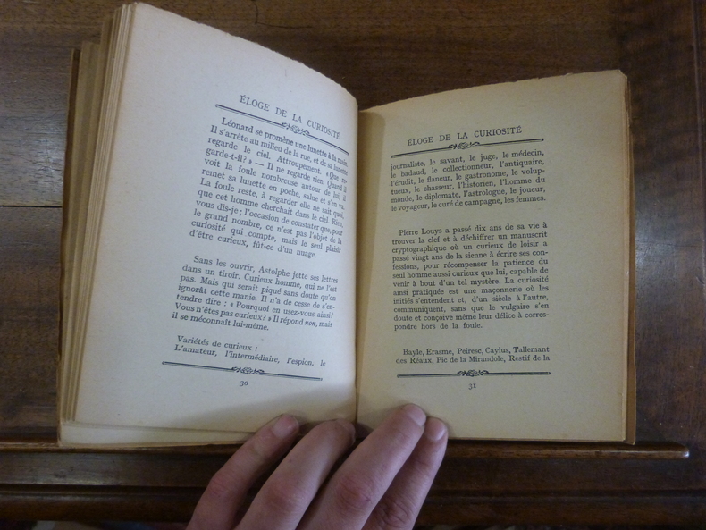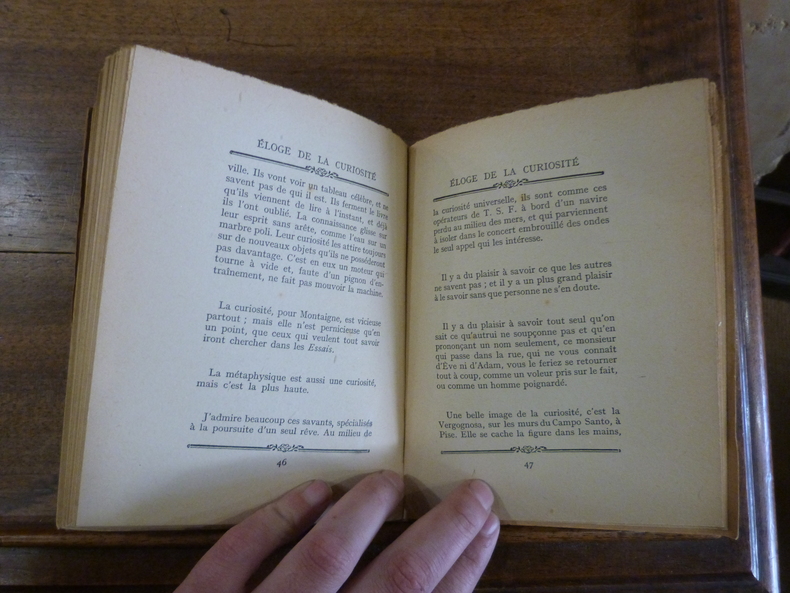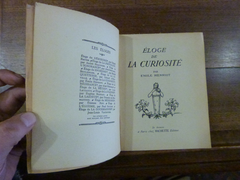 Exceptionnel et rare ensemble complet tout en ÉDITION ORIGINALE. 1 des 100 exemplaires sur Hollande Van Gelder, tous numérotés 59. Tous les volumes à toutes marges sauf Éloge de la Curiosité de Émile Henriot. Mises à part quelques rares rousseurs, superbes exemplaires.