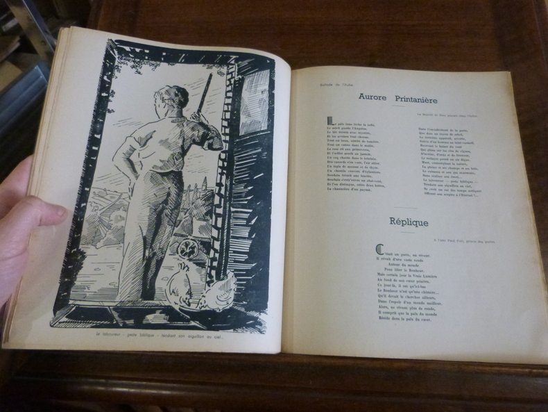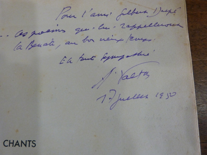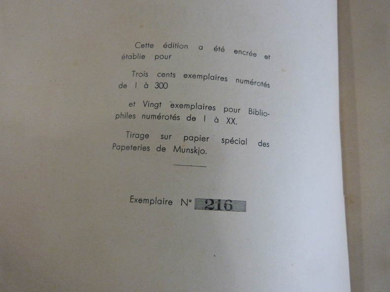 Fontenay-Le-Comte, Imprimerie Bouyac, 1950. Plaquette in-4, brochée, couverture rempliée. Faux-titre, titre, 12 ff non chiffrés. Tirage limité numéroté à 320 exemplaires sur papier spécial des papeteries de Munskjo, celui-ci portant le numéro 216. Ouvrage illustré de quelques compositions par Boscher et Rousselot. Envoi de l'auteur au préfacier. Couverture piquée, papier jauni, quelques rousseurs.