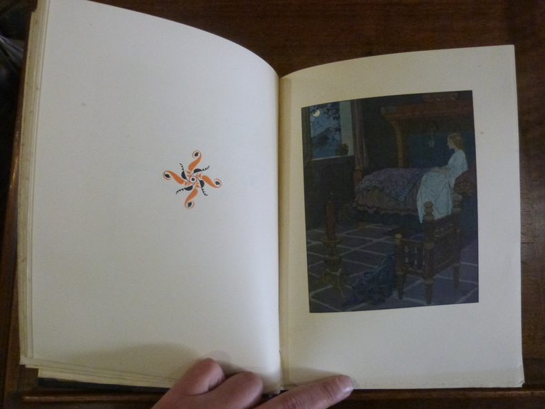 Paris. L'Edition d'Art. Piazza. 1929. In-4 (200 x 255mm) dos à 5 nerfs orné de caissons et coins chagrin noir, plats et gardes jaspés et mordorés, couverture illustrée entièrement conservée, emboîtage de même papier. Texte orné en rouge et noir à l'imitation des manuscrits anciens et 12 hors texte couleurs de Léon Carré. Exemplaire non numéroté, mors affaiblis sinon excellent état de ce remarquable ouvrage.