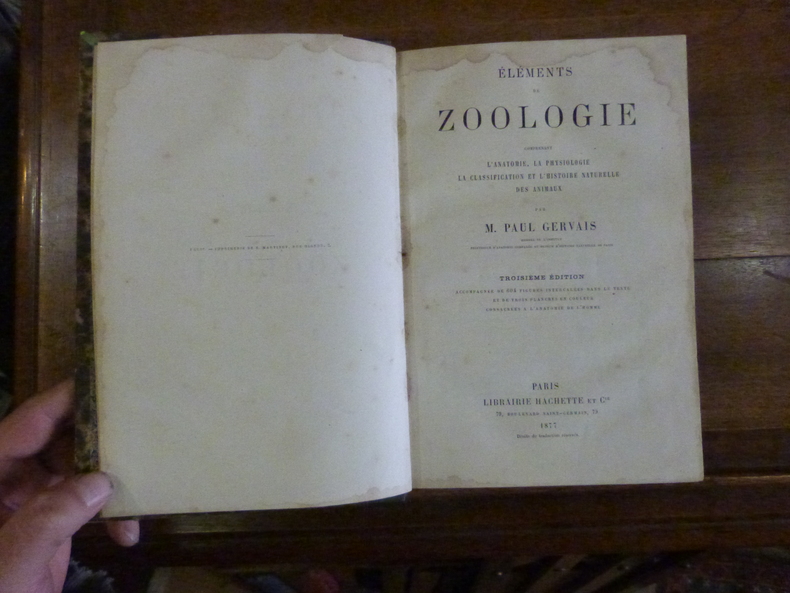 Librairie Hachette et Cie. 1877. In-8. Relié. Etat d'usage, Coins frottés, Dos fané, Intérieur acceptable. 643 pages. 604 figures monochromes dans le texte, 3 planches en couleurs. Dos insolé.. . . . Classification Dewey : 590-Zoologie